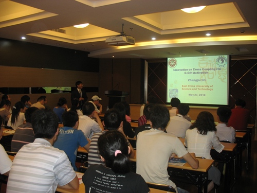 进行学术交流并于5月27日上午在实验18楼315会议室作了题为“Innovation on Cross Coupling via C-O/H Activation”的学术报告,报告由钱校长主持,永利皇宫赌场