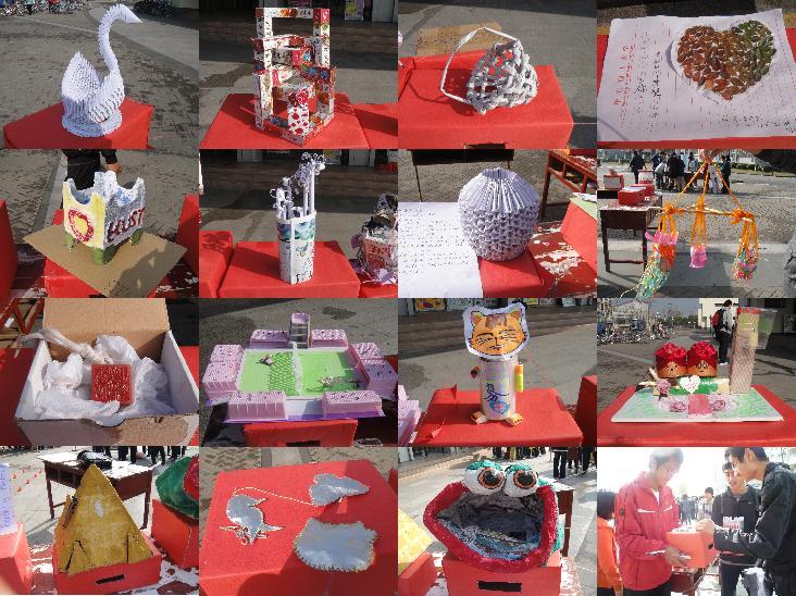 学生们不忘灾区贫困人民,为送上自己的一份爱心而纷纷行动起来。学生们以爱心、环保等为主题,开展了一次独具匠心的创意募捐活动。所谓创意募捐,就是鼓励学生们,用身边的废旧材料创作出精美的公益作品进行展示,观众们将小零钱作为选票,为自己最喜爱的作品加油。同时本次募捐也是永利皇宫赌场
