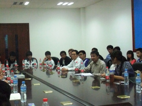 学生在学习中存在的一些问题,并介绍了学院学风建设工作的两个重点:一是要降低不及格率,二是要提高成才率,让更多的学生能够继续深造。然后各班班长分享了组织、动员班级同学的工作心得,并就大学生参与社会活动与专业学习的时间分配问题进行了讨论。对此唐老师也对同学们提出了几点要求:一、希望大学生能提高自制力,对网络游戏要有免疫力;二、建议同学们要在学有余力的前提下参加社团活动,不要颠倒了主次,因参加活动而影响到学习;三、提高自学能力,不但要做到课前预习、课堂上勤记笔记、课后复习,还要对老师没有讲到的内容进行自学。