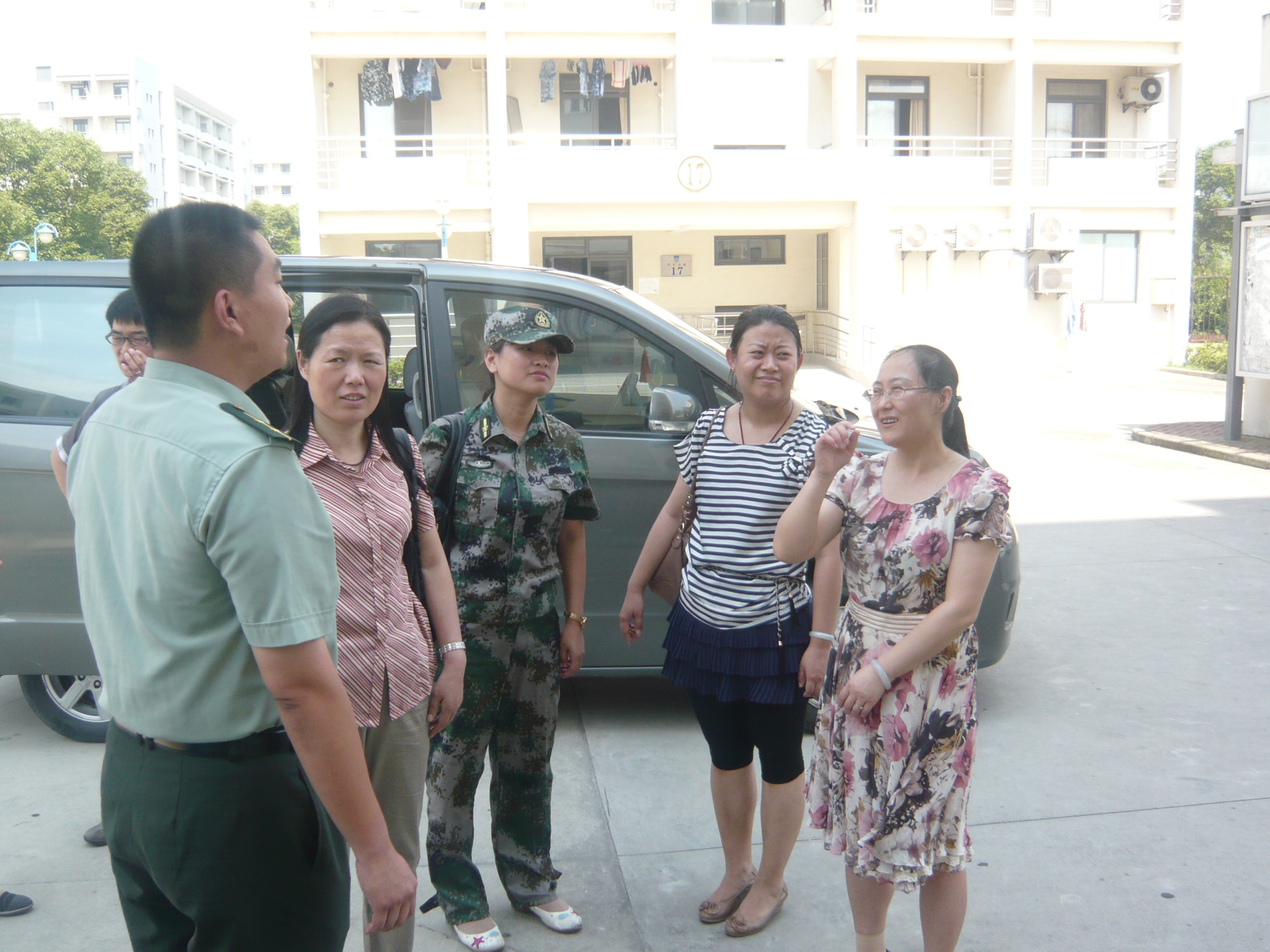 党总支书记王喆,党总支书记、学工委主任王越来到奉贤前来探望军训官兵和受训学生。