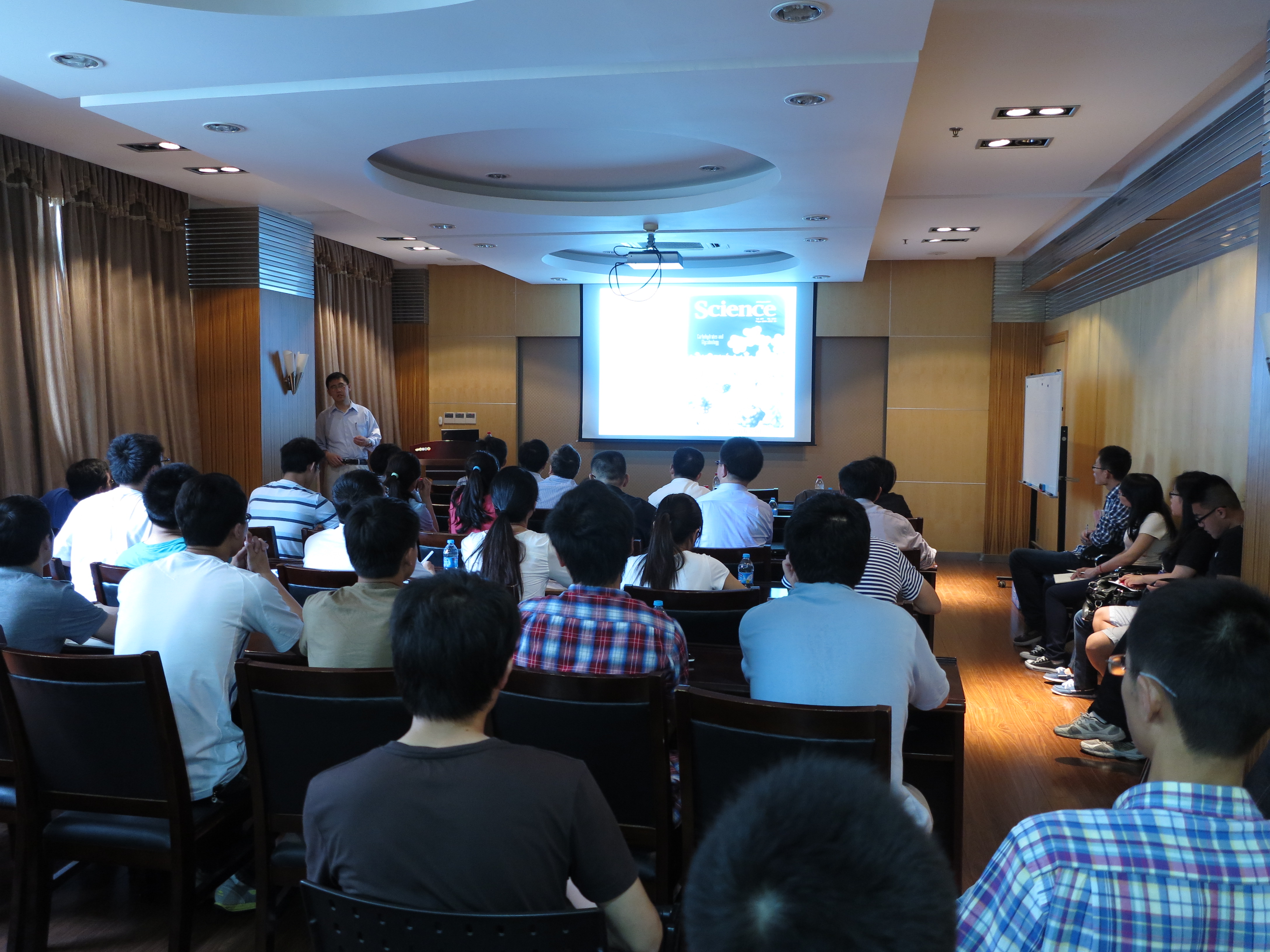 ,钱旭红校长与Binghe Wang教授就肿瘤细胞的分子识别、荧光和质谱探针进行了深入探讨和交流。随后,Binghe Wang教授以“Looking for the “Sweet Spot” and pharmacological targets for disease”为题, 就糖生物化学前沿领域,肿瘤细胞表面特征多糖标识物的分子识别及荧光和质谱探针的设计原理并应用于肿瘤诊断做了精彩和风趣的学术报告,钱校长和与会的师生纷纷提问与Binghe Wang教授进行现场互动。报告会由永利皇宫赌场