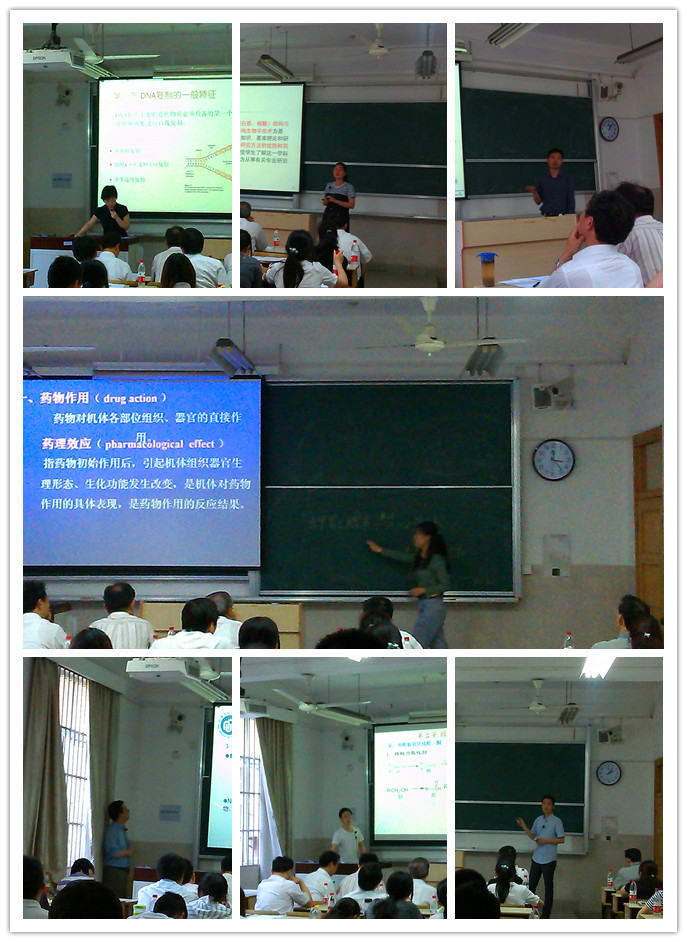 参赛的青年教师分别就药理学、药物化学、结构生物学、天然药物化学等专业课程部分章节进行了授课,有的教师融入了科研内容的新动向,有的教师涉及了学科发展的新思想,新概念,新成果。青年教师讲课内容充实、信息量大,重点突出,思路清晰。当有的老师向学生提问“当你感冒时,服用了哪些抗生素?”同学们都积极给予了回答,贴近生活的问题带领着同学们认真的听着每一门课程。