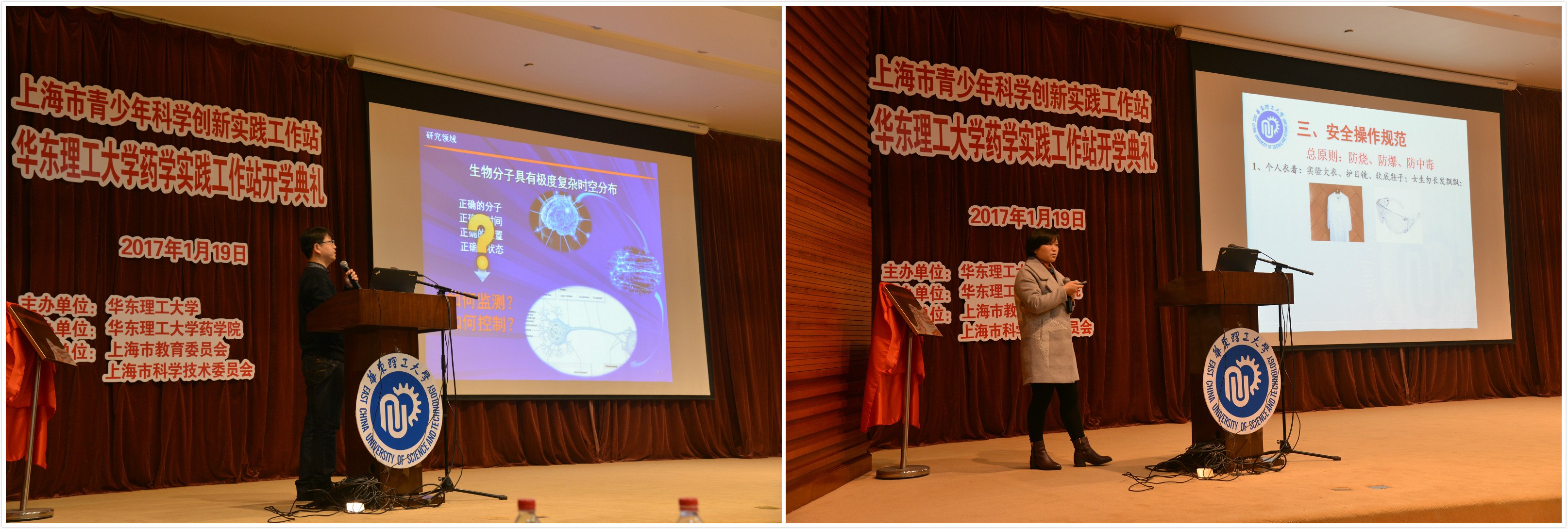 1月19日,在上海市教育委员会、上海市科学技术委员会的联合组织和指导下,华东理工大学药学实践工作站首届开学典礼在奉贤校区通海湖畔的敬贤堂报告厅顺利举行。