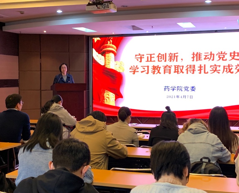 药物化工所研究生第一支部书记方宏龙分别发言。章飞芳结合本支部教工党员的学科特点,从学习内容和学习方式等方面介绍了支部年度党史学习教育工作计划,表示要将党史学习教育与人才培养、教学科研和社会服务紧密结合,激发党员教师守初心、担使命的责任感,积极为学校“十四五”发展贡献力量;方宏龙结合本支部与朱家角镇两个党支部合作共建的经验和党史学习教育的要求,将支部党史学习教育计划与大家进行分享,并表示带领支部同学一起学习党史、领悟思想,把握好这次武装头脑、指导实践的大好机会,认真完成各项党史学习教育工作要求,进一步促进学生党员提高党性意识,努力成才,将来更好服务祖国和人民。