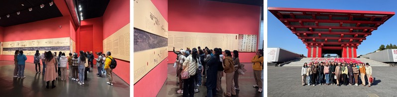 在中华艺术宫内,教职工们在专业讲解员的带领下参观清明上河图巨幕展。动态巨幕生动还原了古画细节,讲解员细致解读画作背后的历史故事与艺术价值,让大家沉浸式感受传世名作的恢弘气势。参观结束后,教职工们一同参与方巾扎染手作环节。大家在专业指导下构思图案、动手创作,指尖翻飞间,蓝、白、红各色花纹的方巾逐渐成型,大家充分体验传统工艺的独特乐趣。此次活动将艺术鉴赏与手工实践相结合,不仅拓宽了教职工文化视野,更增进了团队凝聚力,获得大家广泛好评。